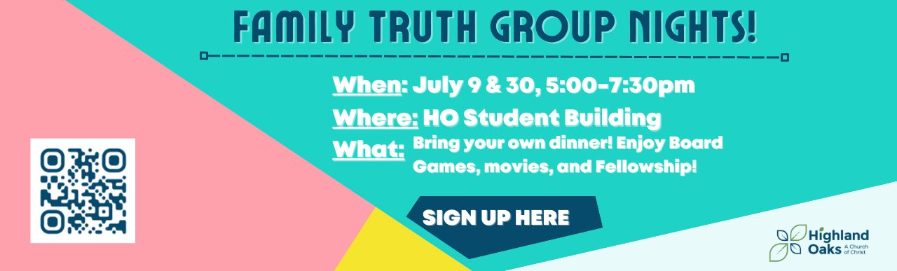 Come and join us for "Family Truth Group Nights" this summer on July 9th and 30th! These nights will be a time of fun with boardgames, movies, and fellowship. Bring your own dinner and favorite game and meet us up at the Student Building for some fun, family-oriented evenings. HO Kids, Students, parents, and volunteers are encouraged to come.